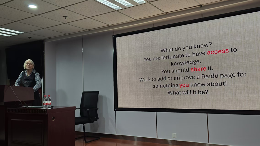 讲座中,Roueché教授还特别强调了撰写与修订百科类词条的重要性。她指出,知识应当公开共享,鼓励学生主动参与开放知识传播,并根据自身研究方向对百科百科内容进行补充完善。