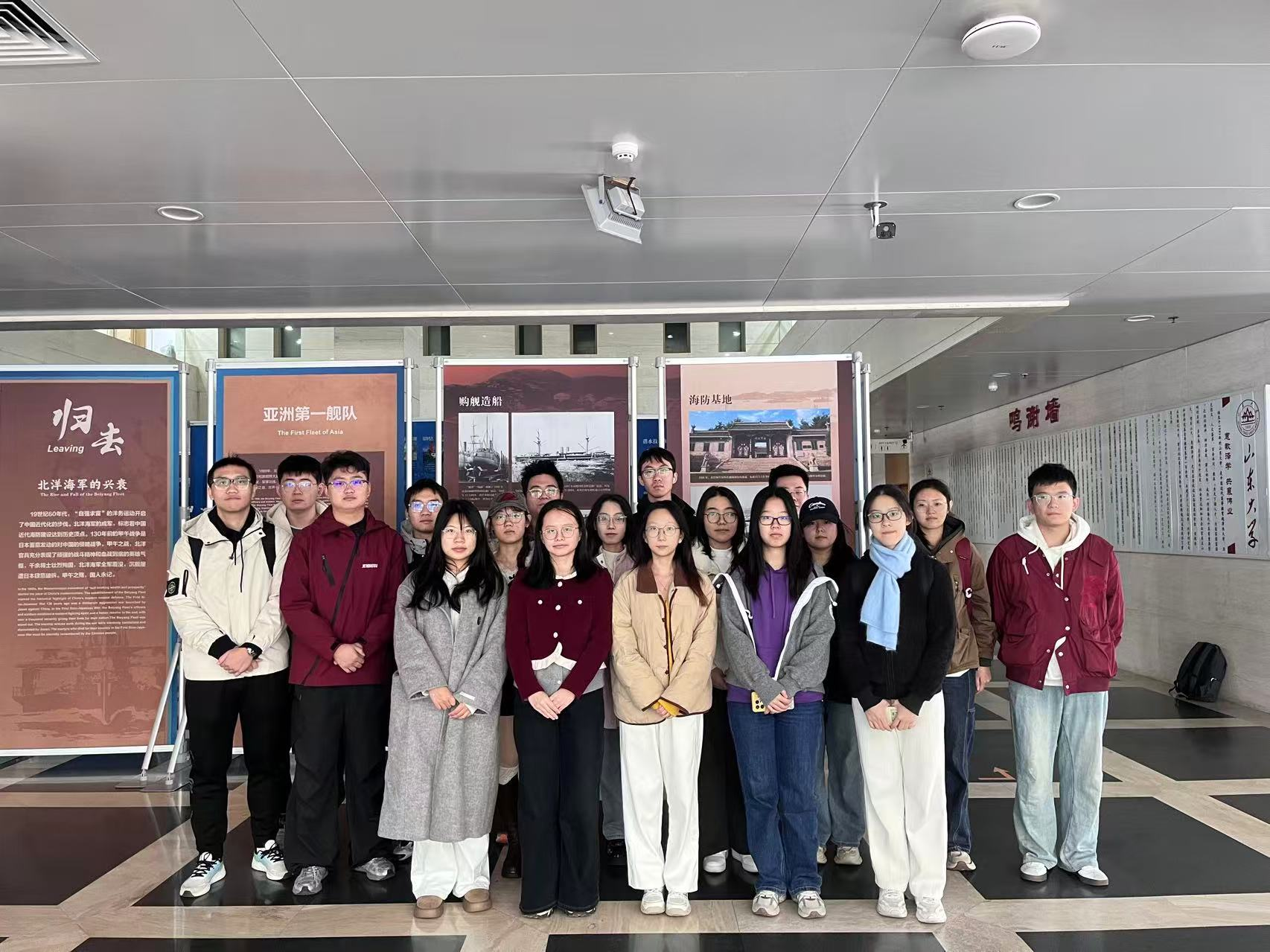 秋意渐浓,历史的回响愈发清晰。为深化党史学习教育,传承爱国主义精神,山东大学历史学院与考古学院本科生党支部于10月21日上午在知新楼A座一楼组织参观“甲午海战暨甲午沉舰水下考古展”。在历史文献与考古成果的交融中,同学们重温甲午风云,感悟民族精神,接受了一场深刻的文化熏陶与专业教育。