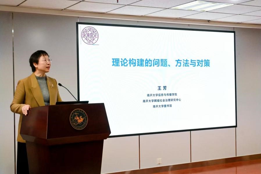 南开大学图书馆副馆长、教授王芳作主旨报告《理论建构的问题、方法与对策》,系统阐述了理论的本质属性与构建方法,指出理论作为对现象本质与规律的系统性解释,具有解释现象、指导实践和传承知识的核心功能。她提出应从解释力、普适性、简约性与可检测性四个维度评价理论,并强调通过演绎法、归纳法及跨学科借鉴等多元路径推动理论创新。针对中国自主理论体系建设,她建议重构学科哲学基础、平衡理论原创与借鉴关系、加强研究方法规范性,为构建具有中国特色的学科理论体系提供了系统的方法论支撑。报告由安徽大学校史办主任、教授马仁杰主持。