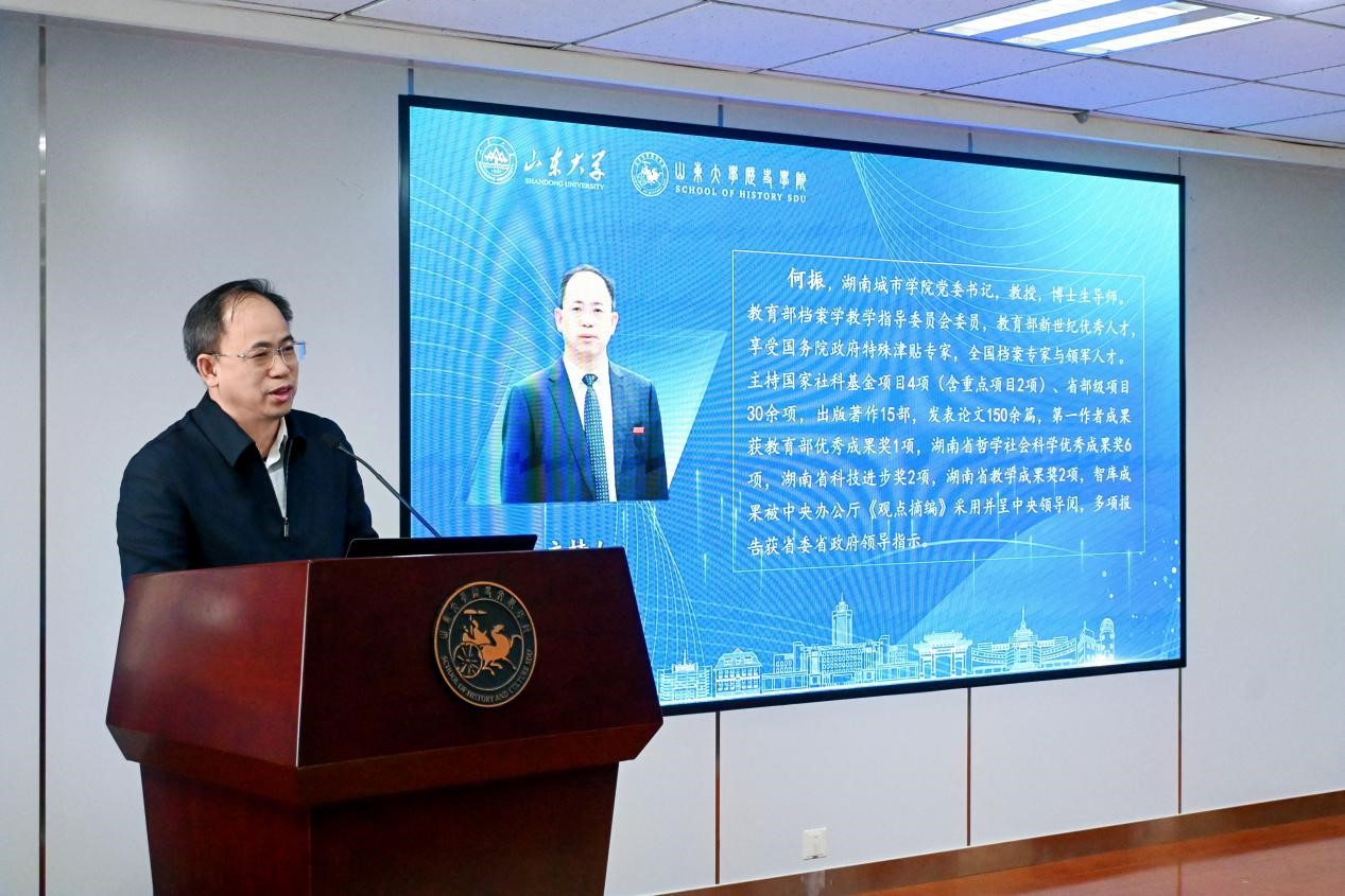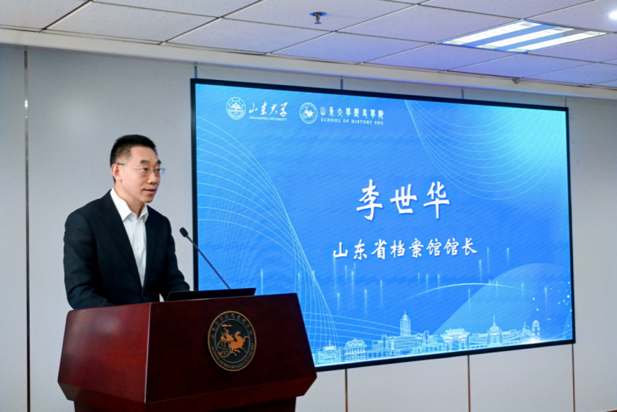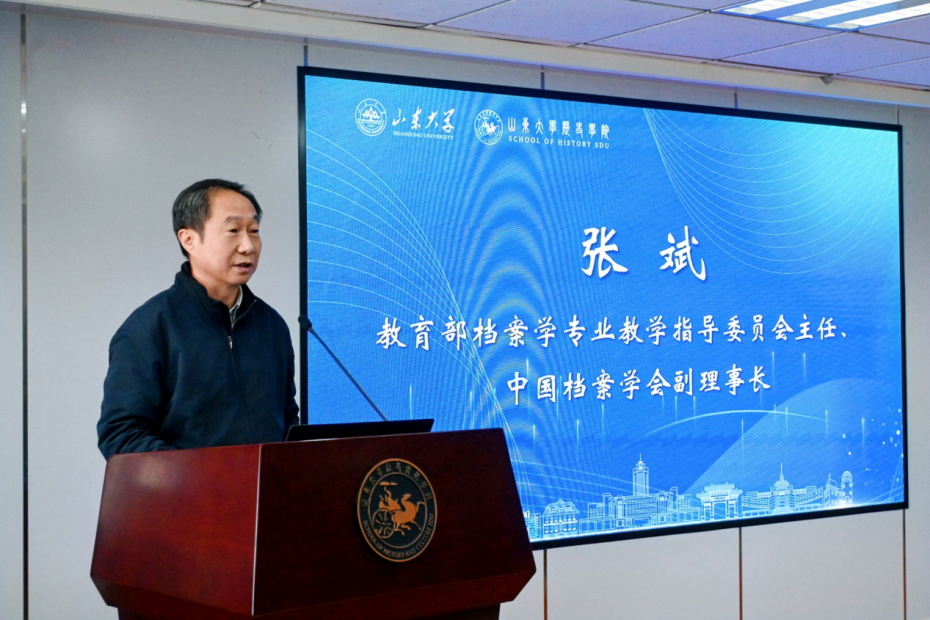山东大学副校长曹现强,山东省档案馆馆长李世华,教育部高等学校档案学专业教学指导委员会主任委员、中国档案学会副理事长张斌出席开幕式并致辞。开幕式由山东大学人文社会科学研究院院长郑敬斌主持。