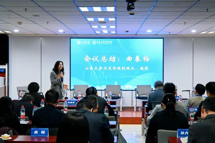 山东大学历史学院副院长、教授曲春梅作本次论坛的大会总结,她对参与的兄弟高校、档案学术期刊对本次论坛的大力支持表示衷心感谢,同时也欢迎各位专家学者常来山东大学做指导交流,期待以此次论坛为契机,集思广益,凝聚共识,共同为推动构建中国特色、中国风格、中国气派的档案学自主知识体系贡献智慧与力量。