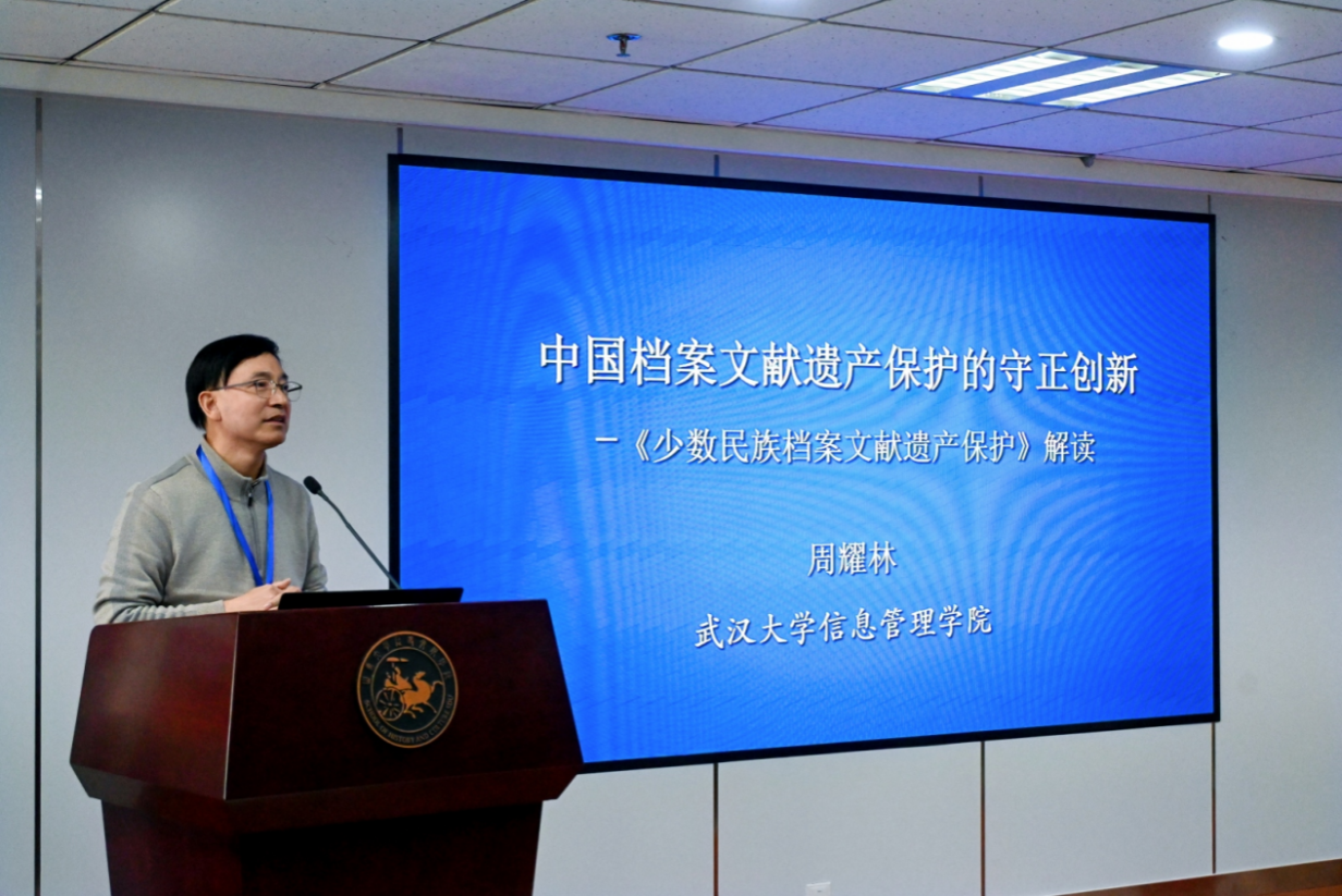武汉大学信息管理学院教授周耀林作主旨报告《中国档案文献遗产保护的守正创新》,他基于国家社科基金重大项目成果发布研究报告,系统梳理中国档案文献遗产保护发展脉络,提出以“大保护”理念为核心的保护体系。该体系在空间、价值、时间三大维度实现创新突破,构建技术、管理、记忆等六大保护观念,并提出集中、精准、数字化、动态、活化五大保护策略,形成从基础到目标的完整保护路径。他指出,我国档案文献遗产保护成效显著,多项珍贵文献入选世界和国家记忆名录。下一步将完善自主知识体系,推动保护工作深度融入国家文化数字化战略,为传承中华优秀传统文化提供坚实保障。报告由苏州城市学院教授张照余主持。
