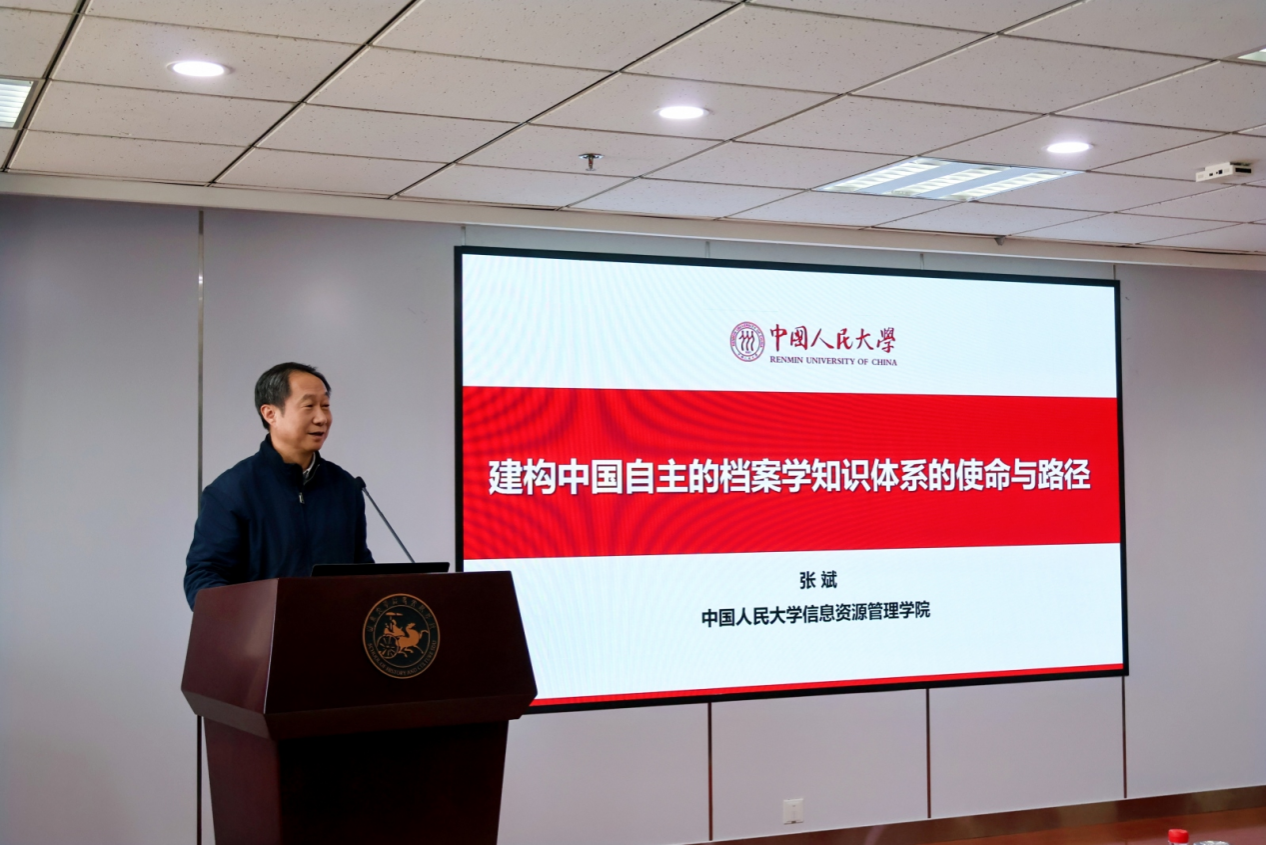 中国人民大学信息资源管理学院教授张斌作主旨报告《建构中国自主的档案学知识体系的使命与路径》,系统阐述了新时代中国档案学发展的核心任务与实践方向。报告指出,建构自主知识体系需肩负四大使命:通过创新知识生产机制回答“中国之问”,提炼本土化经验回应“世界之问”,推进学理化阐释解答“人民之问”,以及直面事业变革应对“时代之问”。在此基础上提出五条实施路径:以开放包容理念融合国际成果与本土经验,以知识创新目标回应重大理论与实践问题,以国家战略牵引学科数字转型,以学科建设提升学术话语权,以服务社会为宗旨发挥档案智库价值,从而系统构建立足中国实际、彰显中国特色、贡献中国智慧的档案学自主知识体系。报告由安徽大学江淮学院院长、教授李财富主持。