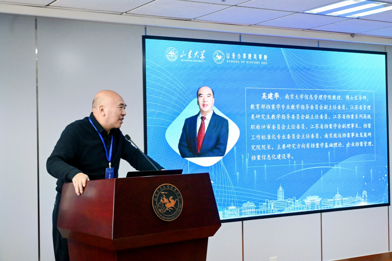 山东省档案馆馆长李世华在致辞中表示,将深入贯彻落实党的二十大四中全会精神,全力支持构建中国自主的大学知识体系。山东大学自1982年创办档案学专业以来,在档案学理论与历史、数字档案资源管理、档案文化遗产保护开发等领域取得丰硕成果。全省档案部门正积极推进档案工作数字化转型,通过制定专项发展规划、加强科技创新与人才培养、建设国家重点实验室等举措,着力构建现代化档案事业体系,为推动中国特色档案学知识体系建构和档案事业高质量发展贡献山东力量。