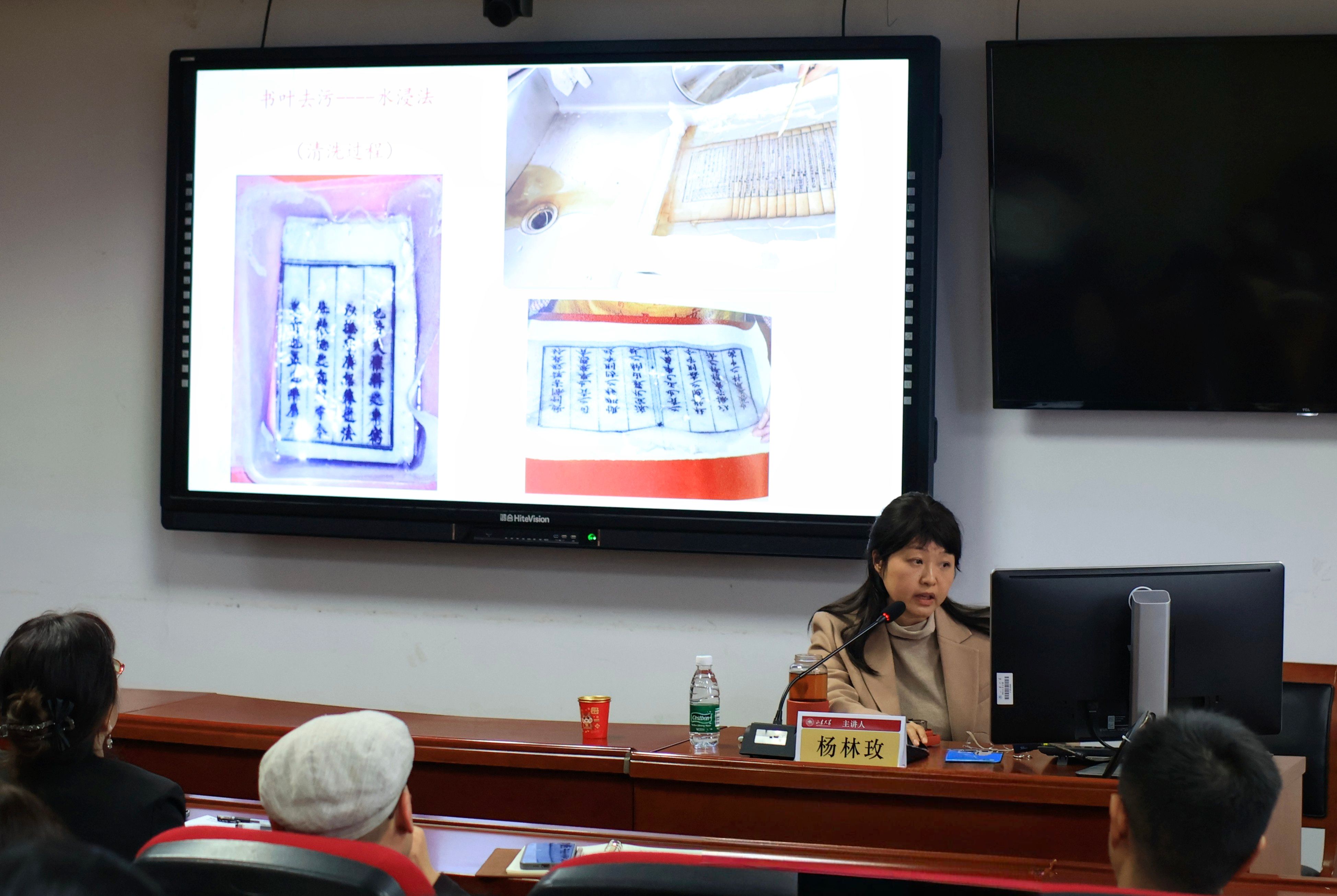 2025年11月24日下午,一场题为《拂水云生 一纸风华——谈古籍修复基础知识》的精彩讲座在山东大学中心校区成功举办。本次讲座特邀山东省图书馆研究馆员杨林玫老师主讲,由历史学院霍艳芳副教授主持,为山大学子揭开了一项“化腐朽为神奇”的古老技艺——古籍修复的神秘面纱。