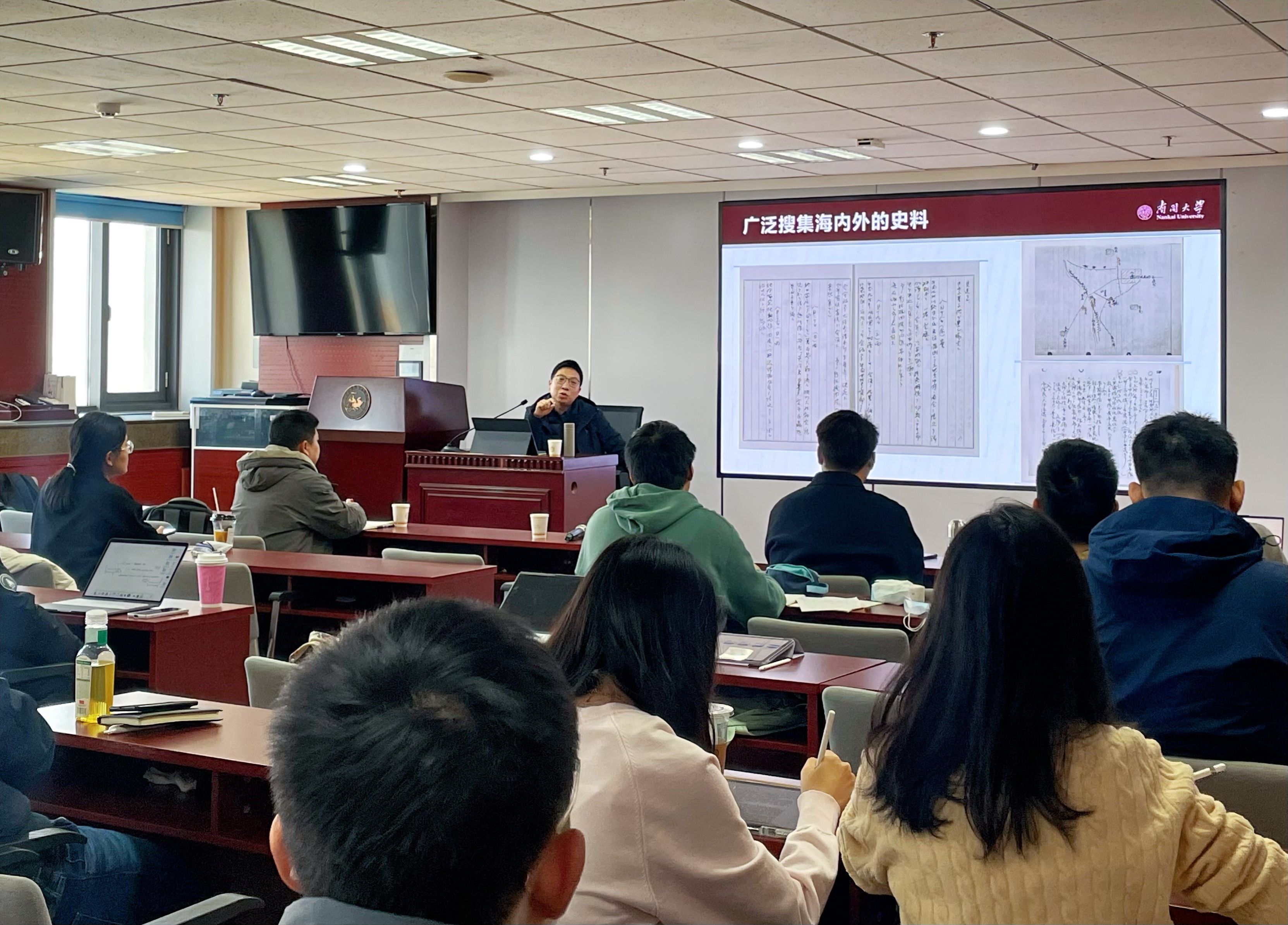 2025年11月20日下午,南开大学历史学院贺江枫教授受邀为山东大学历史学院师生作了题为《和战抉择的生存逻辑:二十九军与卢沟桥事变》的学术讲座。本次讲座由山东大学历史学院李发根教授主持,历史学院宋弘老师、许存健老师等近百名师生参与讲座。