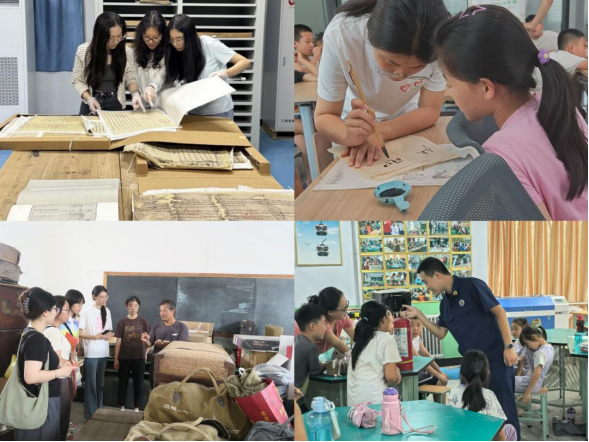服务国家重大战略,“中国遗产,杉乡记忆”调研团赴贵州黔东南州开展锦屏文书、活态档案馆、传统村落建档等民族特色调研,为锦屏文书申遗及保护工作提供专业支持。服务区域发展重点,“红韵赋能”调研队深入马家埠红色博物馆等地,系统探究红色资源赋能乡村振兴的创新实践;“莒光探微”实践队实地走访博物馆,对话省级非遗传承人,系统论证莒文化从地域方国融入中华文明体系的历程;夏山育苗队、莒光育苗队、齐思妙湘队、青筱筑梦队开设植物拓染、非遗核雕、普通话训练、单片机科普等多元课程,联合当地检察官开展防校园暴力讲座,助力乡村教育振兴。服务学校事业发展,山东大学尼诺剧社“艺界互联,云端创梦”交流团与华中科技大学戏剧团开展“NERO TALK”,围绕社团管理、活动运营等深入交流,探索校际合作新模式,共促校园戏剧文化发展。