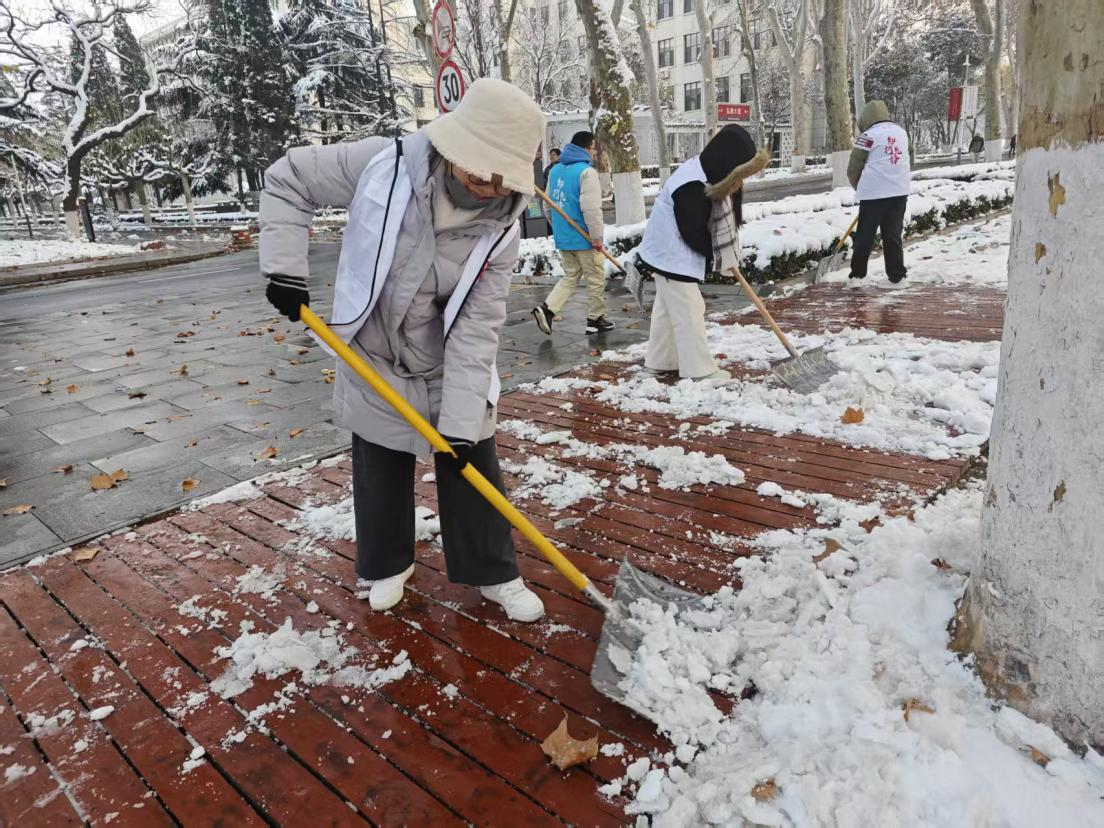 为清理积雪,保障环境整洁,12月13日,历史学院与考古学院青年志愿者协会第一时间组织10名志愿者在中心校区小树林开展扫雪除冰志愿服务,为师生日常通行提供便利,践行“奉献、友爱、互助、进步”的志愿服务精神。