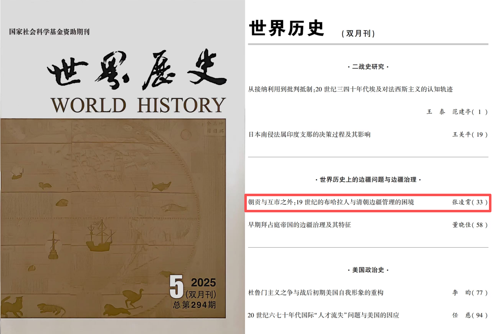 近日,历史学院博士研究生张凌霄在《世界历史》2025年第5期发表题为《朝贡与互市之外:19世纪的布哈拉人与清朝边疆管理的困境》的学术论文。
