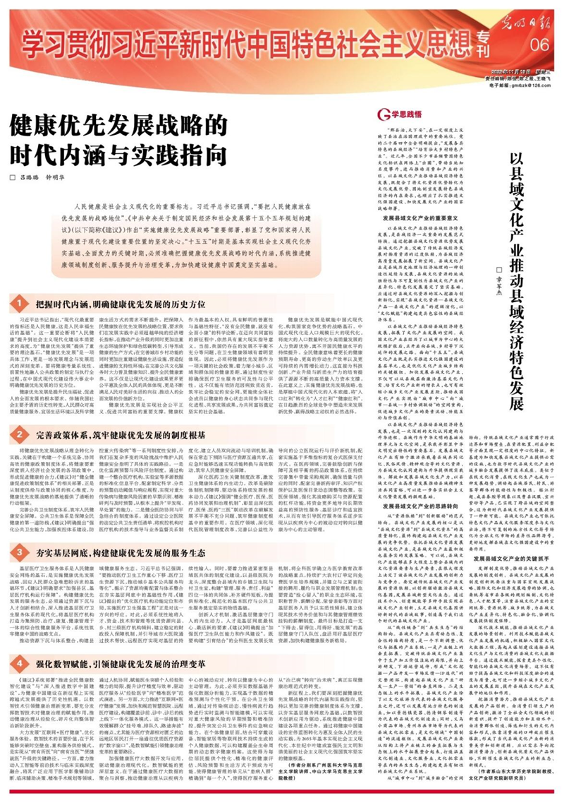 我院章军杰副教授在《光明日报》(2025年11月19日第6版)发表题为《以县域文化产业推动县域经济特色发展》的理论文章。文章认为,以县域文化产业推动县域经济特色发展,是县域经济一次重要的发展范式转换。通过挖掘县域文化资源优势发展县域文化产业,突破传统县域经济发展对物质资源的过度依赖,为县域经济高质量发展拓展了新空间。