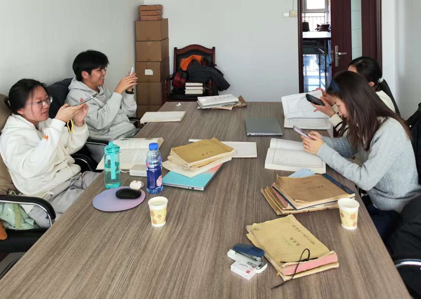 本次田野调查分为访谈与查阅文献两大环节。14日上午,在刘文峰主任陪同下,历史学院一行走进乐陵市铁营镇大王庄,拜访了81岁的原村会计王德平老人。师生们围绕上世纪60年代至90年代村账本反映的乡村经济问题开展访谈,王德平老人对着账本耐心解释当时的情况,还讲述了自己的人生经历,让学生们了解到了集体化时期与改革开放前后乡村生活的图景。14日下午,师生们在刘文峰主任引导下查阅了大王庄的旧账本,包括粮食物资账、往来账、现金账、工分登记簿、生产收支分配账等多种类型;师生们还结合《铁营镇镇志》《宋氏族谱》等文献及口述资料对账本内容进行了交叉验证。此外,学生们还动手协助当地完成了近20册账本、1部镇志与1套族谱的电子化扫描归档工作,让这些易受潮、易破损的纸质资料转化为可长期保存、方便查询的数字资源,为这些珍贵民间文献的长期保存与学术研究奠定了基础。