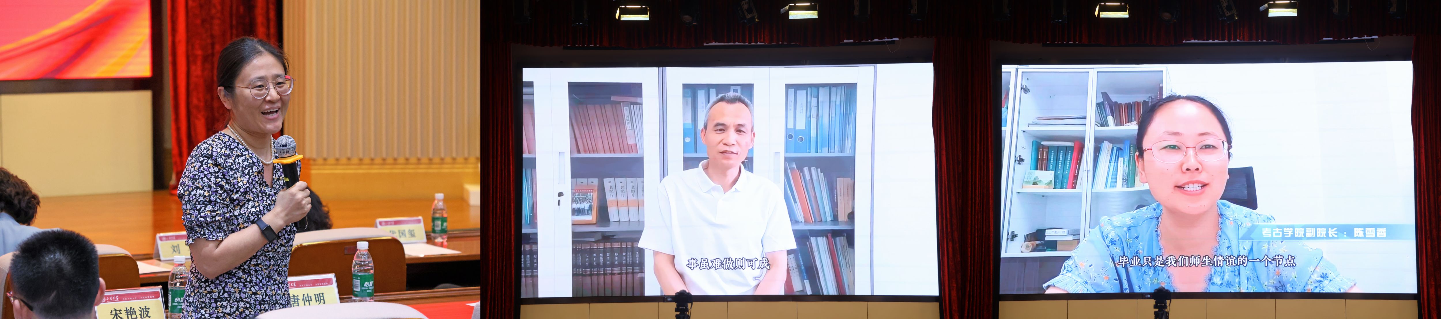 历史学院与考古学院党委书记刘军,本科生院院长、考古学院院长王芬,历史学院院长代国玺,考古学院常务副院长郎剑锋,历史学院与考古学院党委副书记李功华,历史学院副院长曲春梅,历史学院副院长张新刚,考古学院副院长唐仲明,考古学院院长助理宋艳波,考古学院教授王灿,学院各学系教师代表,全体辅导员老师,历史学院、考古学院2025届全体毕业生和家长代表共同出席典礼。活动由历史学院与考古学院党委副书记李一楠主持。
