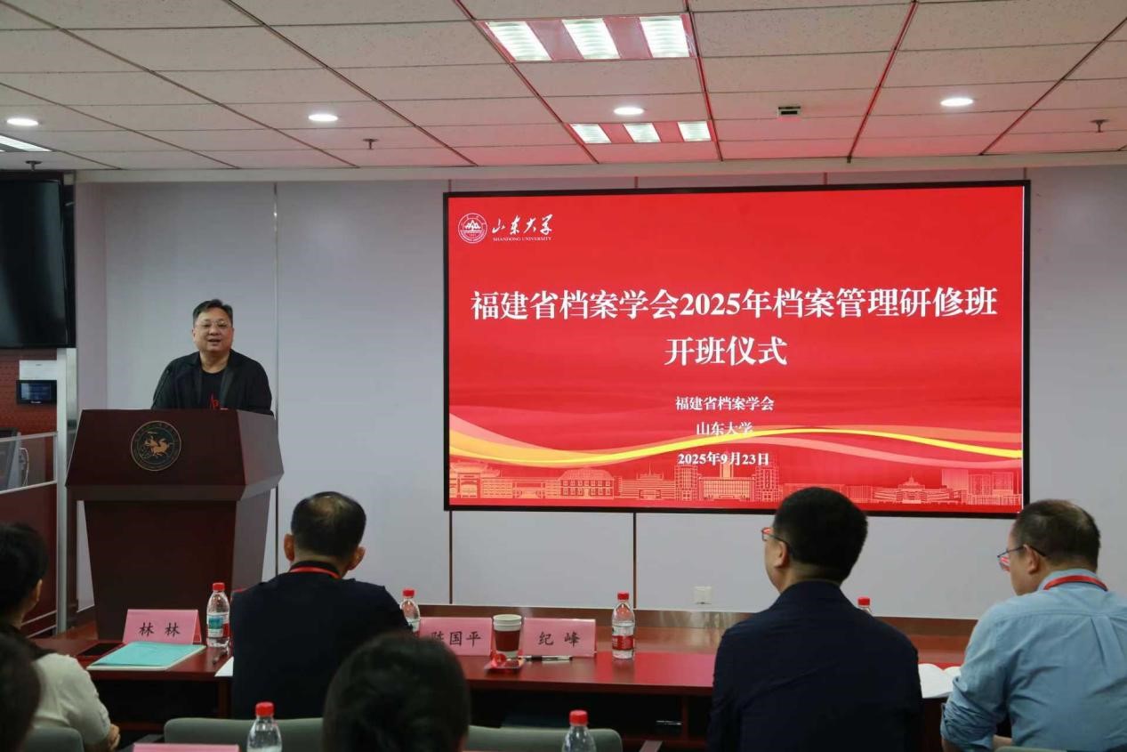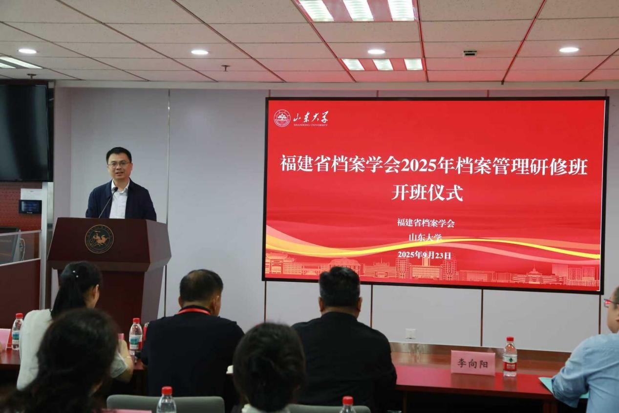 为深入学习贯彻习近平总书记关于档案工作“走向依法治理、走向开放、走向现代化”的重要指示精神,落实《“十四五”全国档案事业发展规划》“人才强档”要求,9月23日,福建省档案学会2025年档案管理研修班在山东大学中心校区举办。山东大学党委副书记李向阳,福建省档案学会会长、福建省档案馆二级巡视员纪峰出席开班仪式并讲话,开班仪式由山东大学历史学院与考古学院党委书记刘军主持。