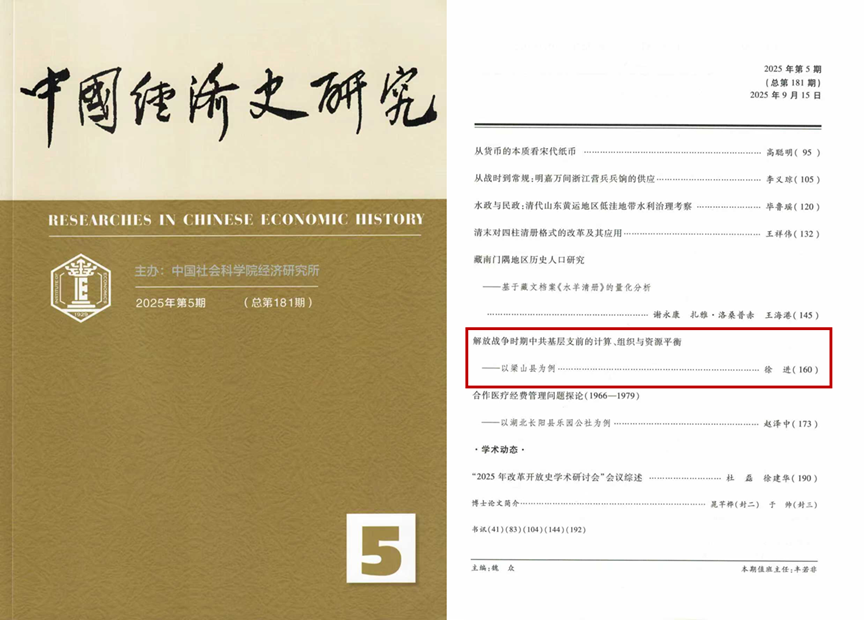 近日,历史学院徐进教授在《中国经济史研究》2025年第5期发表题为《解放战争时期中共基层支前的计算、组织与资源平衡——以梁山县为例》的研究论文,文章论述了解放战争之胜利与中共强大的动员支前能力之间的关系,具体而言,中共之所以能最大限度地动员群众参与支前,除了通过土地改革建立起强大的乡村动员体系,还离不开精细的数目字计算和严密的管理体系。文章分析了这一时期基层村庄资源的贡献能力,并考察了中共三方面的举措:严谨的调查研究与计算方式、严密的战勤组织、有效利用新旧制度资源。
